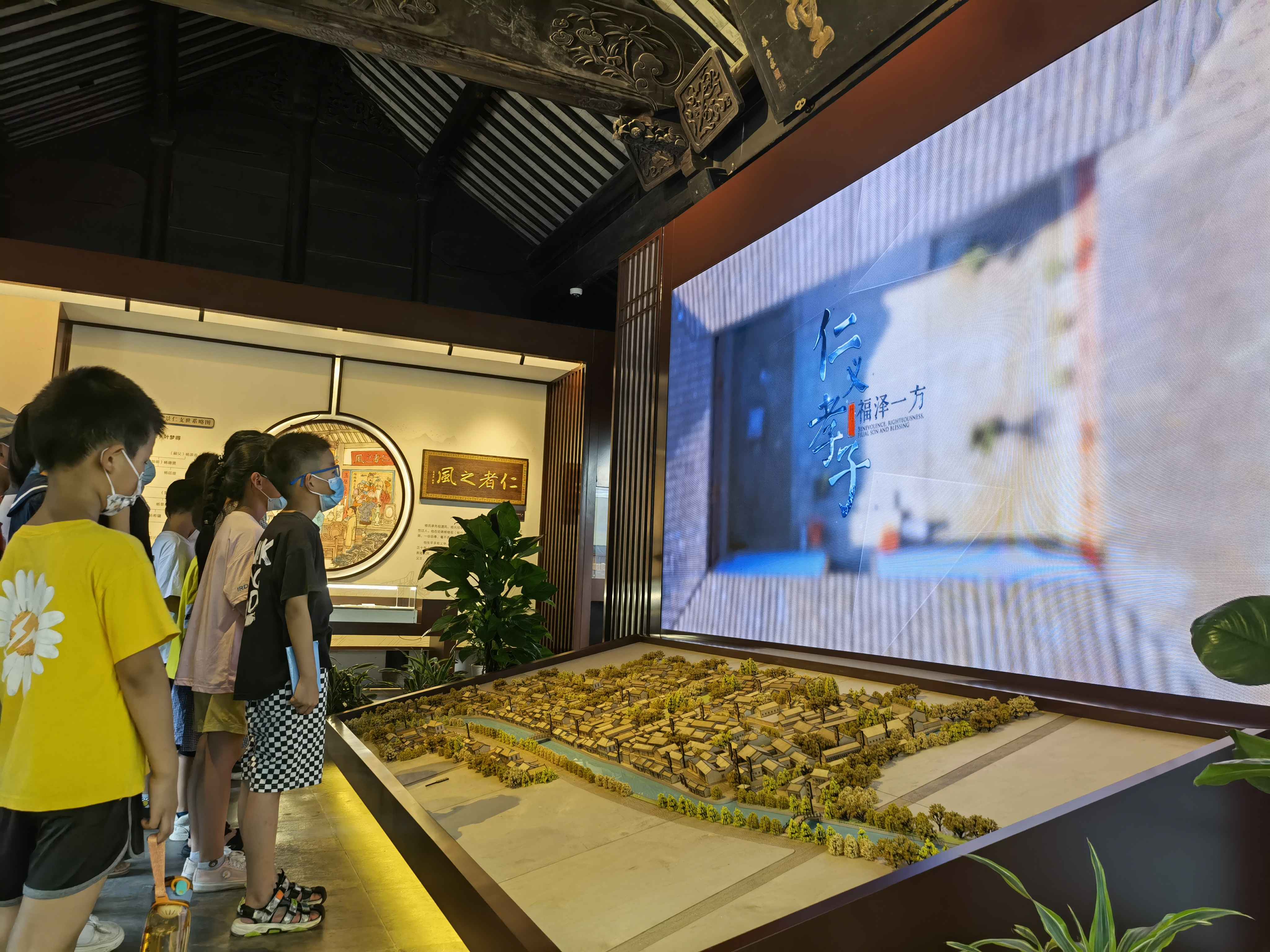 参与本次研学的青少年在志愿者老师和讲解员阿姨的带领下,开启了本次探寻家风故事之旅。首先我们来到了杨氏孝坊,杨氏孝坊又名“杨孝子祠”,建于清嘉庆10年,曾是杨氏家族祭祀祖宗的地方,讲解员一边带领大家参观,一边为青少年们讲解杨氏代表人物杨岱及其家族“孝、义、廉”的家风故事。虽然天气炎热,但青少年们丝毫不减学习的热情。