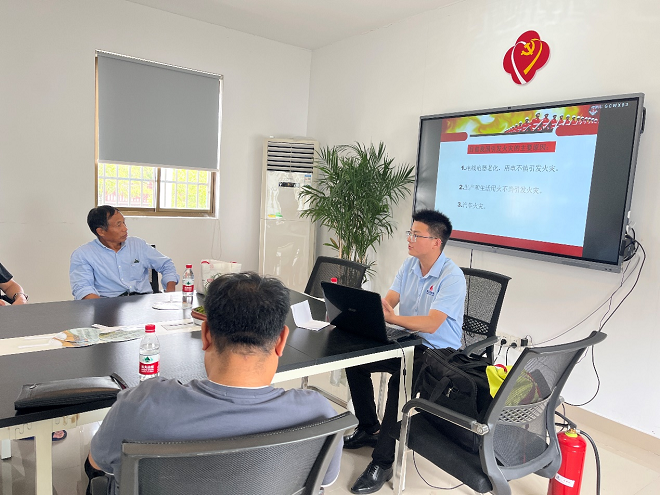 活动中,老师以讲座的方式来向商户普及消防知识,并从发生火灾如何正确报警、如何扑救初期火灾、如何使用灭火器进行火灾扑救、如何自救逃生等基本知识进行了详细讲解。