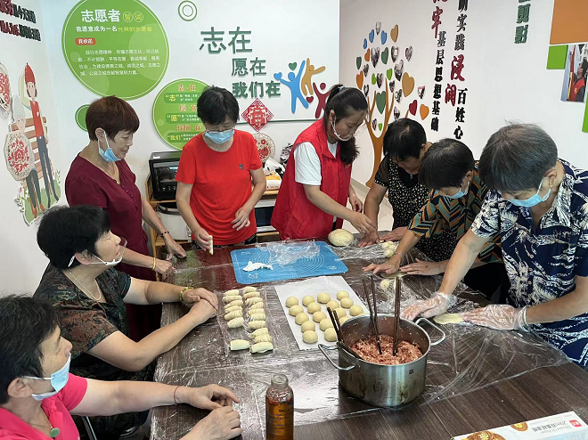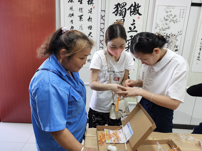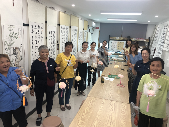 节日温情在活动的每一个环节体现,团员与居民们互帮互助,共同完成作品,桌有月饼香,花灯映秋情,传统文化在手指尖流转延传,邻里友情在节日里绽放温暖光芒。