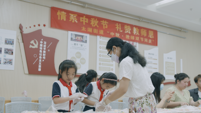 中秋节恰逢教师节,9月9日下午,太湖街道新时代文明实践所举办了“情系中秋节 礼赞教师恩”中秋·教师双节活动,活动旨在进一步传承、弘扬中华民族优秀传统文化,在双节来临之际,让小学生们与老师们一同制作月饼,以“情”为皮,以“爱”为馅,展现真切的师生情谊。