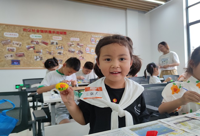 活动开始,工作人员便以“萝卜蹲”作为热场游戏,鼓励青少年积极参与其中,活动现场精彩连连,笑声不断。趣味挑战过后,工作人员将提前准备的贝壳彩绘套装进行了分发,套装组合中包含彩绘画图书与DIY制作材料。工作人员带领大家欣赏了图书中的贝壳画作品,并鼓励少年们通过阅读自我思考与探究,从而了解贝壳画的基本画法。终于,在一次次的猜想、探索与交流中,少年们逐渐有了清晰的思路与想法。随后,他们便迫不及待地参与制作,以海洋贝壳作为彩绘载体,用丙烯颜料描绘出专属于自己的深蓝梦境。少年们在构图、选材、形状挑选和色彩搭配上思考的极为认真,他们发挥奇思妙想,漂亮的贝壳在他们的指尖绽放出奇妙的图案。完成后,青少年将自己独一无二的作品进行交流与展示,成就感爆棚!