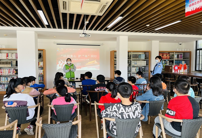 此次活动邀请了张家港市公安局吴警官授课,她向参与人员讲解了《未成年人保护法》中关于“家庭保护、学校保护、社会保护、网络保护、司法保护”等相关内容,并通过真实案例让其充分了解自身权利,鼓励其从小懂法守法。吴警官还围绕《预防未成年人犯罪法》等法律法规,以通俗易懂的语言就未成年人违法犯罪的基本特征作了详细讲解,给社区青少年上了一场生动难忘的法治教育课。随后,少年们进行了分享交流,共同阅读法治图书,结合图文和案例,通过边学边问的方式,加深对法治教育的理解和认知。