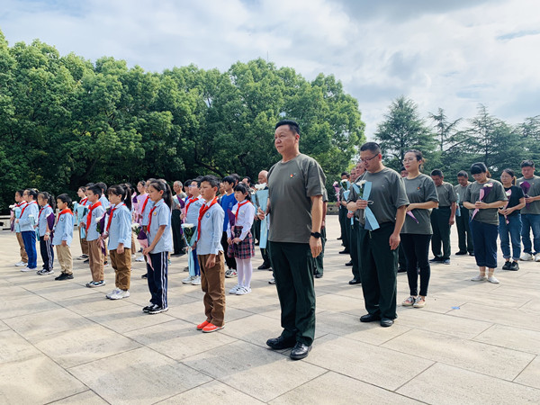 在庄严肃穆的革命烈士纪念碑前,全体人员神情肃穆、列队整齐。伴随雄壮的《义勇军进行曲》,全场齐声高唱国歌。随后,大家默哀致敬,敬献花圈,依次环绕瞻仰革命烈士纪念碑,深切追思革命先烈们艰苦卓绝的奋斗历程。