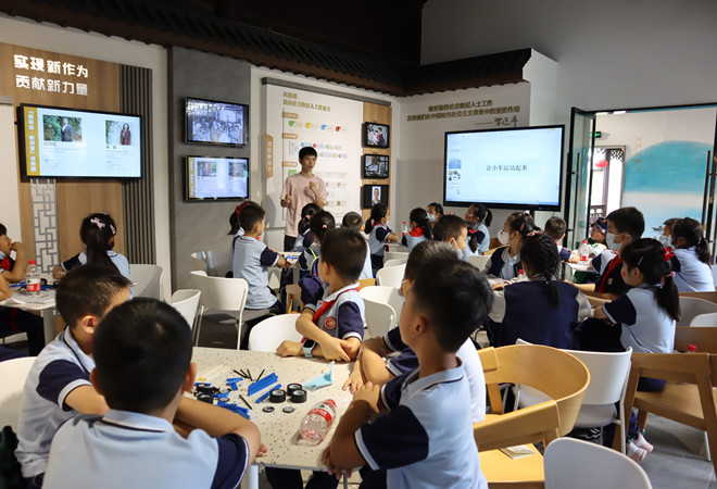 活动开始之前,志愿者用提问的方式,通过孩子们最喜欢的游乐场来引起大家的兴趣,青少年团员们纷纷抢着举手发言。互动交流激发了在场青少年团员们的发散性思维能力和想象力,同时也开启了今天的机械之旅。志愿者随后就科普了目前最前沿的机械科学知识,在场的青少年团员们听得十分认真。