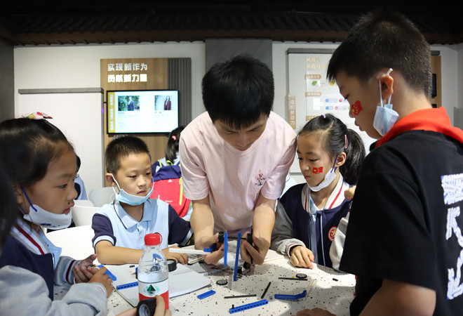 很快,到了大家一展身手的时候了。在志愿者的指导下,大家运用乐高积木搭建属于自己团队的动力小车,将脑海中的创意变现。大家拿到自己的版面模型后,就开始动手制作起来。对于完成有困难的青少年团员,在志愿者和同伴的耐心帮助下,也顺利的拼接完成。活动最后,孩子们互相展示各自的作品,在一片欢声笑语中活动圆满结束。