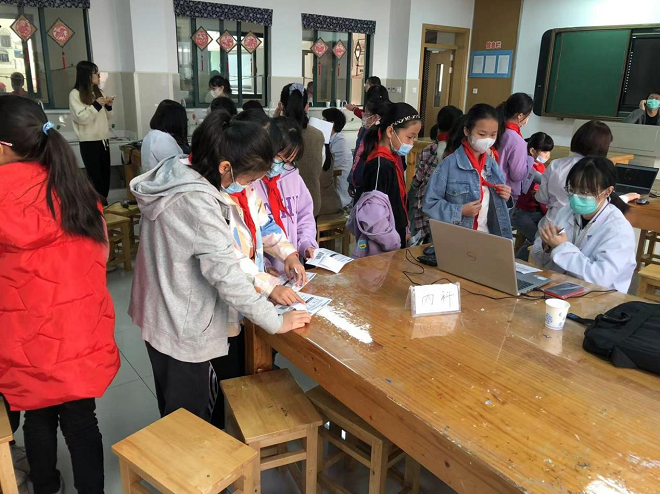 体检现场,医务人员严格落实疫情防控措施,做好个人防护及消毒相关工作,耐心、认真的为学生服务。这其中离不开青年志愿者的帮助,他们保证了体检场所清洁、安静,学生在现场志愿者们的指导下,体检开展的井然有序,最大程度上压缩体检时间,不影响学生正常上课时间。