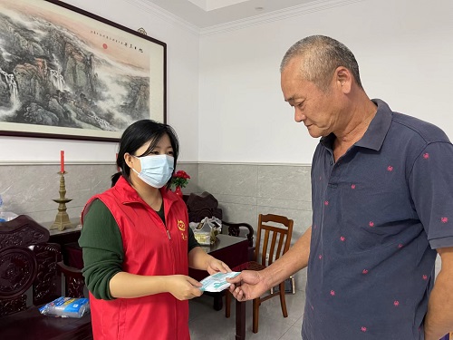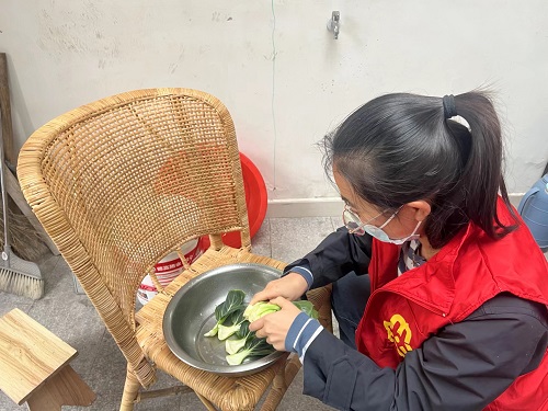 上门走访过程中,团员们与其悉心交谈,详细询问身体近况、生活情况,鼓励他们建立信心,一旦有困难或是有需要可及时向村里反映,村里也将及时协助解决困难,希望他们用积极的态度面对生活。同时青年团员们还为他们洗菜,打扫卫生,并为他们送上防疫套装。
