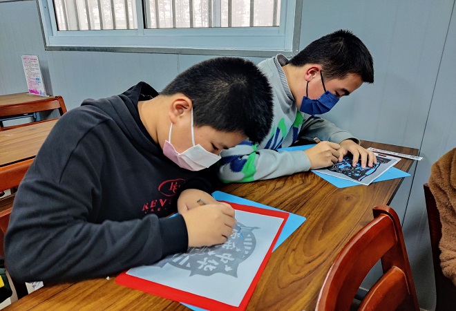 一把刻刀展技艺。在志愿者的指导下,少年们迫不及待地要展示一番,他们手拿刻刀,沿着线条,精准下刀,均匀用力,一丝不苟,精雕细刻。“我爱我的祖国”“辉煌百年”“强国有我”……一幅幅生动的作品在少年们手中诞生。