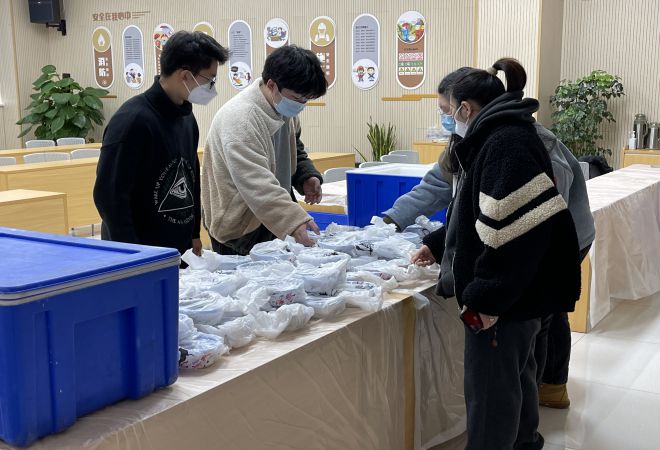 活动前,志愿者们将煮好并且分装好的腊八粥交给环卫负责人,嘱托他们帮忙送到每位环卫工人的手中,让他们在工作之余能喝上一碗热气腾腾的腊八粥驱驱寒气、暖暖身子。