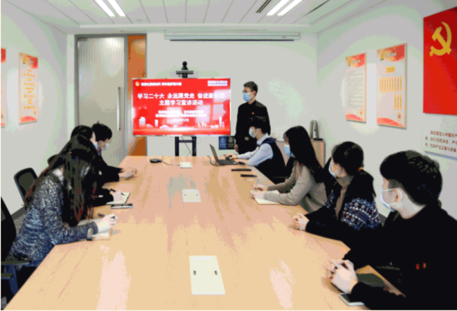 为进一步引领青年员工学深悟透党的二十大精神,踔厉奋发、勇毅前行。12月12日,区团委副书记、苏高新股份团委书记王唯带领公司本部职工在“向新”青年学习社(市级)集体学习党的二十大精神,并认真传达了习近平总书记在党的二十大报告中对青年提出的殷殷期盼。青马工程学员,市、区团代会代表等青年代表结合自身工作、学习实际,以座谈会形式畅谈了学习党的二十大精神的感想和认识,引起青年们的强烈共鸣。