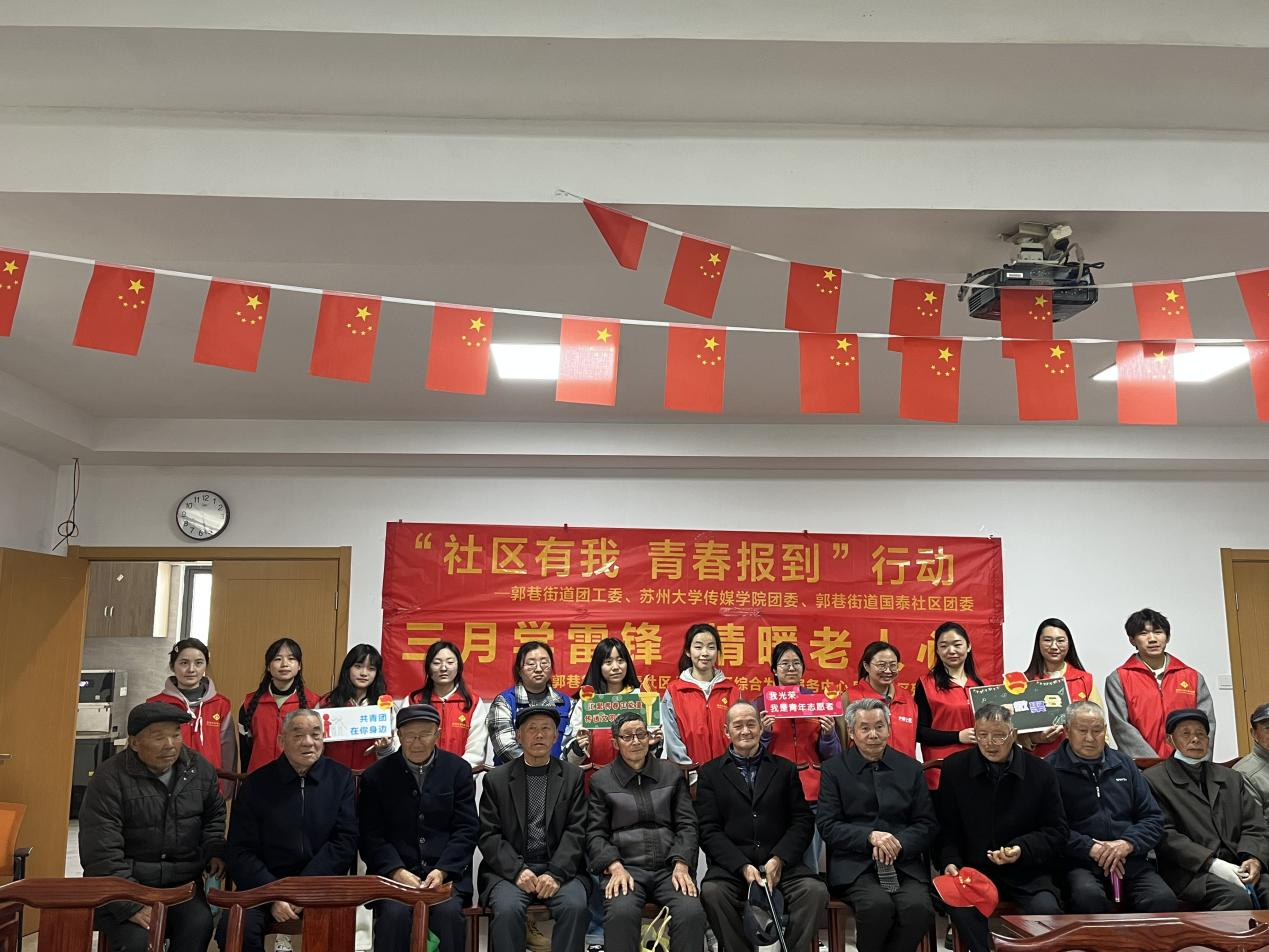 春风送暖,爱心送情。为践行雷锋精神和弘扬尊老、爱老、敬老、助老的中华民族传统美德,倡导“奉献、友爱、互助、进步”的志愿精神,引导有志青年尊重老人,孝敬长辈,学会感恩。近日,郭巷街道团工委联合苏州大学传媒学院团委、国泰社区团委开展“社区有我 青春报到”行动,开始了具有深刻意义的智慧助老、科技惠老、普法敬老的红色之行。