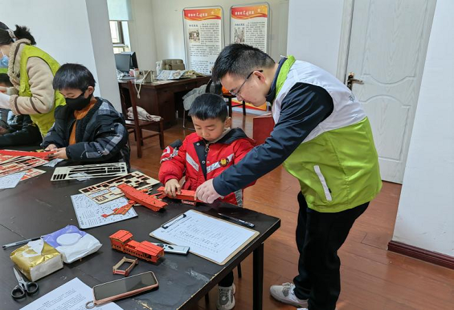 志愿者首先带领青少年们学习了雷锋同志的相关故事,向青少年们讲解新时代的雷锋精神,积极引导学田村青少年们弘扬新时代雷锋志愿服务的精神,使雷锋精神在青少年的心中悄悄生根发芽。随后,青少年们开始制作红船模型。拿到制作材料后,大家跃跃欲试,迫不及待地拆开包装,根据志愿者的讲解和说明书细心地做了起来。尽管红船制作有一定难度,但是大家仔细研究,互相启发。经过大家的共同努力,一艘艘精美的红船模型便在青少年们的巧手中诞生了,青少年们的脸上也都露出了满意的笑容。