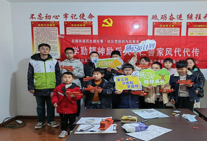 为进一步学习雷锋精神,弘扬爱党爱国情怀,传承红色文化,2023年3月11日后塍街道学田村(善政社区)团委开展“学习雷锋精神·传承红色文化”红船模型制作活动。