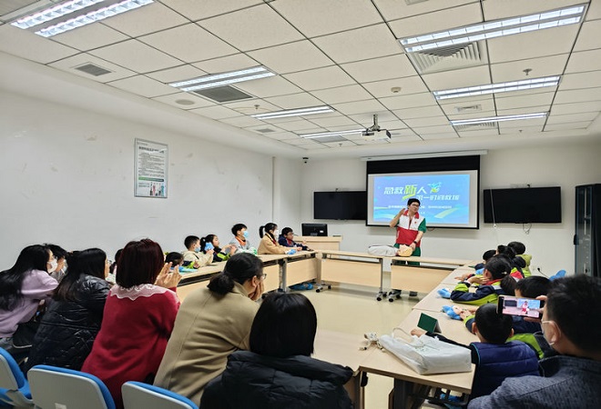 3月5日下午,江苏省红十字救护培训师、苏州科技城医院青年志愿者顾登宇、周振飞以“急救新人&第一时间救援”为主题,为参与者们详细讲解了急救的基本知识和技能,包括心肺复苏、海姆立克急救法等常用急救知识与技能。
