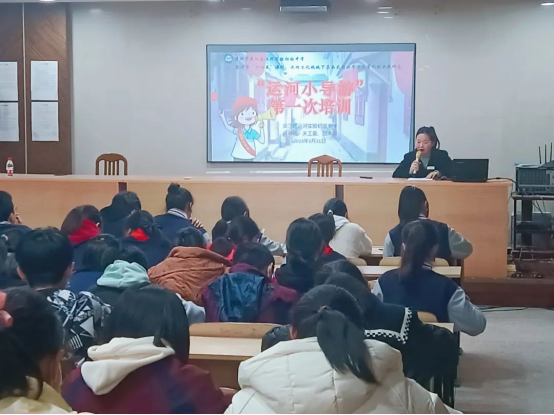 为向青少年宣传运河文化知识,促进运河文化在校园生根开花,不断增强青少年对优秀传统文化的认同感、自豪感,前期,平望镇团委邀请了青年导游志愿者与中小学相互结对,成立了“运河小导游”社团。“运河小导游”培训班在吴江区运河实验初级中学顺利开班。
