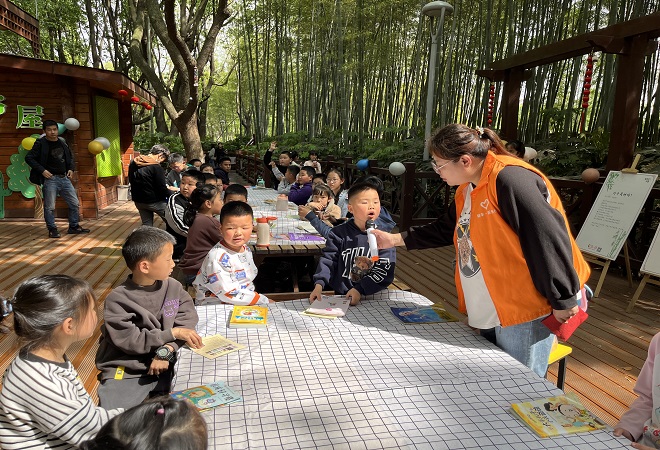 小歇环节,早已备好一堆好吃的点心,大家尽情享受吧!吃饱喝足,那么得运动下喽。亲子互动游戏~竹子屹立不倒接力。伴随着尖叫声呐喊声,大家激动的不行,玩了很久都意犹未尽。最后时光,自由活动,家长带着孩子去公园其他场地参观打卡。尾声,春光难忘读书会,来个美美的合照留念。
