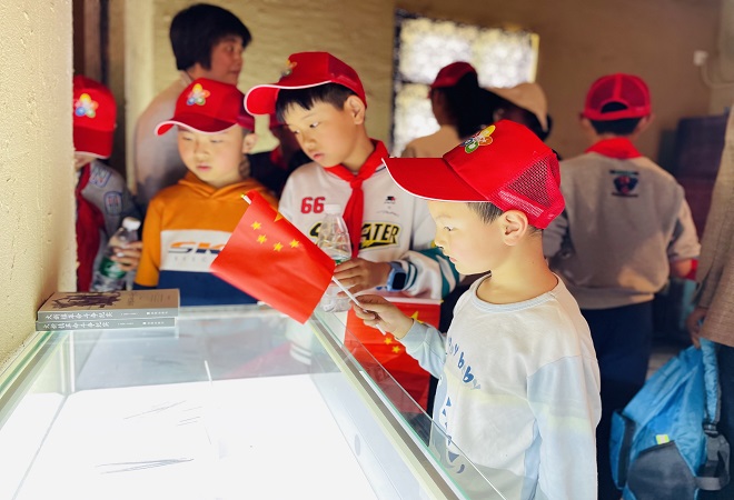 园内设有抗战雕塑群、抗战历史路、后方医院展示馆、初心宣誓墙、“军民鱼水情”步道等“网红”打卡点,充分还原大新镇本土抗战历史史实。走进爱国主义展厅,孩子们认真聆听解说员讲述革命先烈辉煌的历史事迹,重温中国共产党的革命历程,追忆那段艰苦卓绝的战争岁月。一幅幅照片、一件件实物,让大家对抗战的历史细节和英雄事迹有了更加深入的了解和感悟;一段段难以忘怀的岁月,仿佛就在眼前;一个个浴血奋战的英雄,依稀就在身边,也让他们更加深刻地领悟到了老一辈革命家不屈不挠、艰苦奋斗、顽强拼搏、忠诚无私的革命精神。