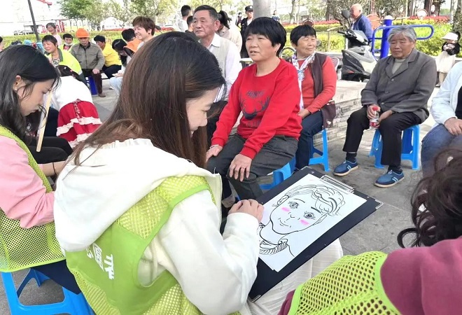 苏州科技城实验小学校“立人”青年志愿者们带来的竹笛、萨克斯等乐器演奏以及美声、原创歌曲独唱不断吸引着村民们驻足欣赏,与此同时,志愿者们还为老人们进行现场画像,生动的形象让老人们“怦然心动”。