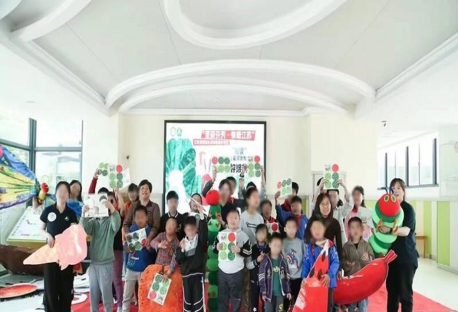 本次活动呈现的是世界绘本大师艾瑞·卡尔经典故事《好饿的毛毛虫》,这本绘本至今已出版超过半个世纪,陪伴了全世界几代人的童年。青年志愿者们通过讲述一次毛毛虫蜕变成蝴蝶的过程,让特殊儿童感觉到成长的力量,自我的蜕变及生命的奇妙,告诉他们“不要害怕成长,即便微小,有一天,你也会成为一只美丽的蝴蝶展翅而飞”。用绘本搭建一个平台,在特殊儿童的心中播下阅读的种子,发挥儿童的“人生第一书”的作用,帮助他们提高认知和理解能力。