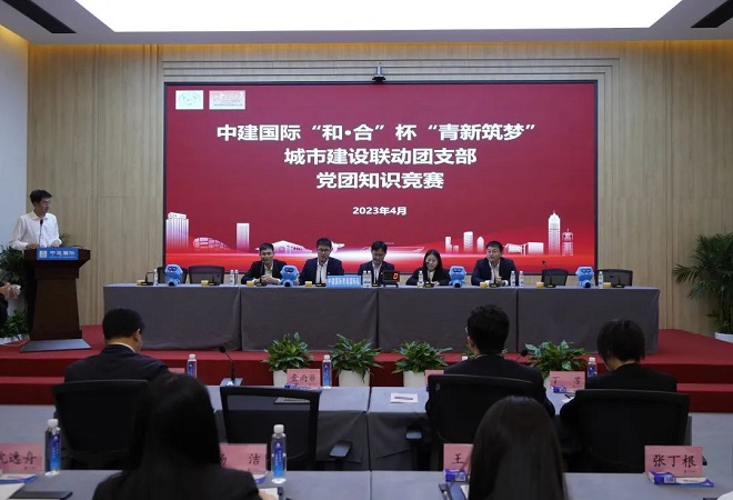 在五四青年节来临之际,4月25日下午,苏州高新区团委携区内团组织走进中建国际城市建设公司南京大学苏州校区 (西区 )工程项目部,参加中建国际“和·合”杯党团知识竞赛,深入学习贯彻党的二十大精神,以团的“联动支部”工作法为抓手,凝聚城市建设青年力量。