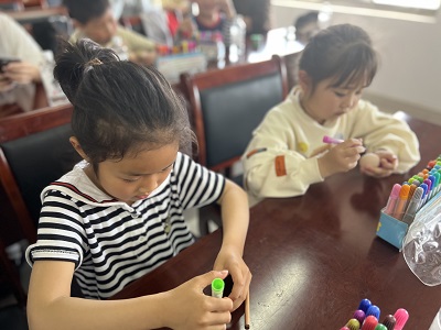 随后志愿者为大家发放了提前煮熟的鸡蛋,孩子们纷纷拿起画笔,挑选着自己喜欢的颜色给蛋画图案。有的胸有成竹,一上手就得心应手,有的在东张西望,希望从别人那找灵感,不一会儿每个人的手里都有了自己满意的作品,画好之后,孩子们把自己的画好的鸡蛋放在自己蛋兜里,各自欣赏着自己的作品,现场氛围好不热闹。
