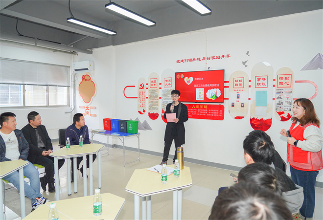 活动现场,张浦镇团委副书记杨春怡对垃圾分类的意义、标准进行了详细讲解,并以模拟分类投放、有奖互动问答的形式,引导大家养成垃圾分类投放的良好习惯,树立爱护环境、美化家园的“主人翁”意识。同时,高级收纳整理师英子老师为大家介绍了整理收纳的要义,并进入职工宿舍对衣物的分类摆放进行了现场教学,既实用又便捷的多种整理方法,让大家受益匪浅。