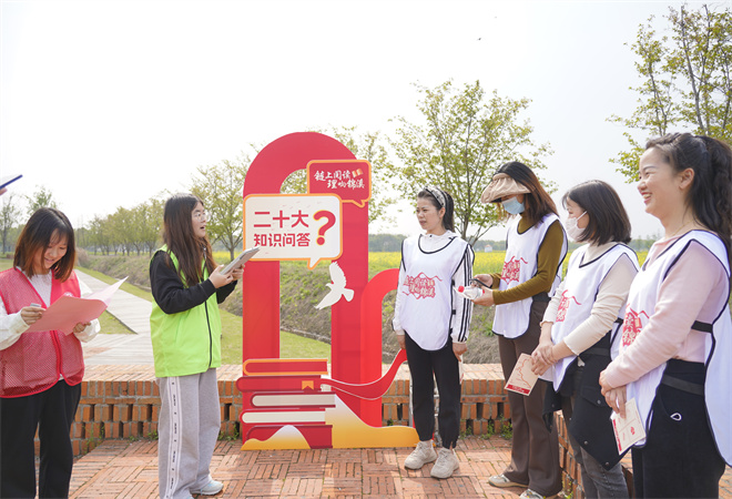 近日,在昆山锦溪镇三联村明镜荡的旖旎春光中,锦溪镇“‘链’上阅读 ‘理’响锦溪”徒步竞赛活动拉开帷幕。在锦溪镇团委的组织下,来自全镇相关部门、村(社区)的青年成对成组,沿着一条由五个不同党建红色点位构成的“红色之链”,在徒步看乡村变化、参与打卡任务中,感悟红色初心。