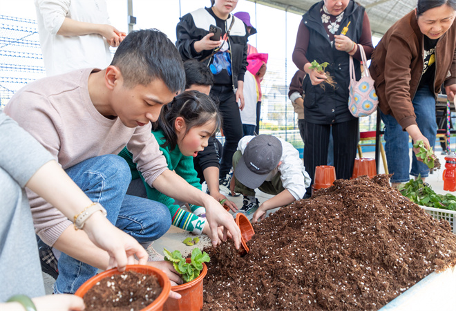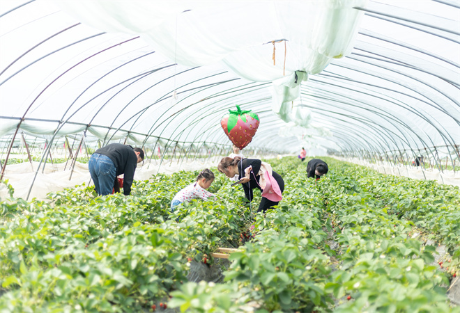 二是DIY青年“草莓范”。一颗颗草莓红艳诱人,走进大棚空气中都夹杂着草莓的香甜,这是由青年职业农民所种植的。“有没有小朋友知道面前的草莓苗是怎么长大的?”新农人现场科普,在动手中学到农业知识,了解草莓“背后的故事”,亲手体验栽种、采摘草莓,记录下它的成长之路。