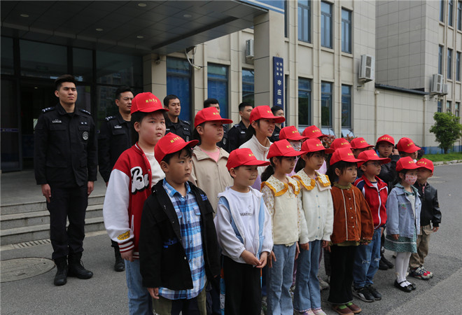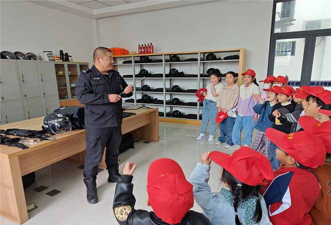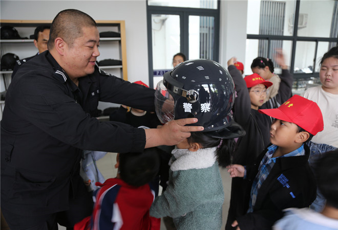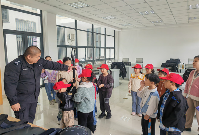 特警队员与孩子们进行“体验式”互动。活动现场,巡特警队员向孩子们展示了擒敌拳和队列演示,真实地再现了警察日常训练场景,孩子们有模有样地学起了队列演示,全场掌声和欢呼声不断,小朋友争相和特警队员们合影。器材室里,特警展示了防刺背心、防暴盾牌、警棍、手铐、抓捕叉、防暴头盔等警用装备的使用方法,孩子们被现场“圈粉”,争先恐后地戴上防暴头盔,穿上防刺背心,着实过了一把“小小特警”的瘾。