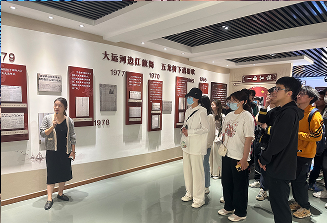 2023年5月13日上午,长桥街道团委组织苏大医学院的青年学生们来到位于长桥街道龙桥社区的龙桥精神教育馆,带领青年们跟随讲解员的脚步,透过史料图片、影像记录和现场展品沉浸式体会这位于运河沿岸、有着六十余年精神传承社区的生态之路,零距离感受长桥发展生态文明的绿色蝶变,提高生态文明意识。