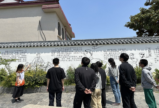紧接着,在青年团员代表的带领下,大家共同参观了石楚材初心游园。团员们边参观边听讲解,共同学习石楚材精神,聆听感人的抗战故事,追忆革命先烈艰苦卓绝的峥嵘岁月,汲取革命先辈精神力量。