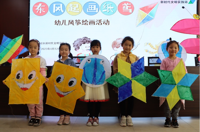 滨河社区团支部开展“东风起画纸鸢”幼儿风筝绘画活动