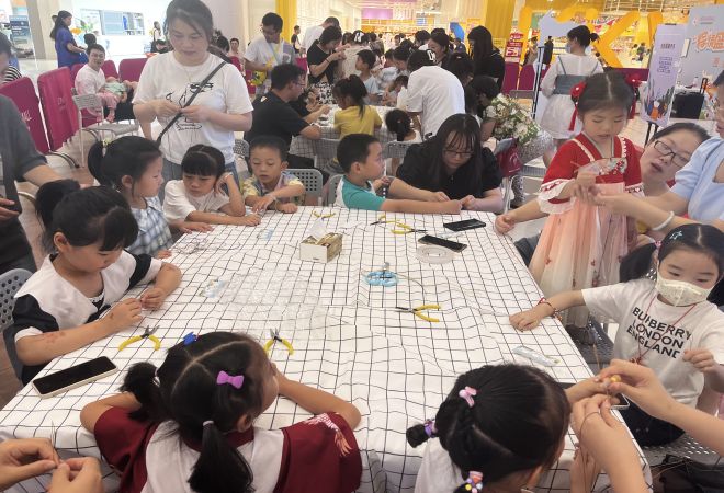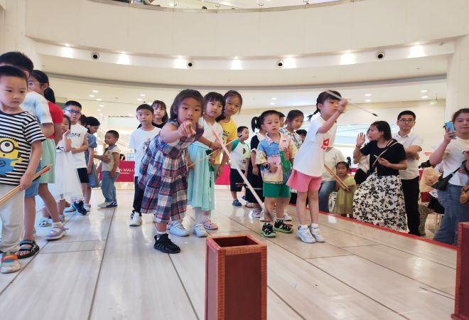 游园会分为活动签到、拍照打卡、手工DIY、亲子游戏、习俗观展以及自由活动等五大功能区。参加活动的亲子家庭签到打卡后,以小组的形式开展手工活动。在“寻叶包粽”组,大家卷粽叶、填粽米、缠细绳,粽香弥漫中,一个个或三角或四方的粽子悄然成型;在“手工香囊”组,大家识药材、穿针线、挂配件,欢声笑语中,一件件玲珑夺目、立体饱满的香囊作品展现眼前;在“五彩编绳”组,大家分丝线、学花型、编彩绳,巧手翻飞中,一根根精美绝伦的彩绳系于腕间。手工结束后,在主持人带领下,大家开展了“粽里寻她”、投壶等小游戏,并引导大家在自由区观看知识展板,了解端午习俗,全方位深度体验端午游园会。