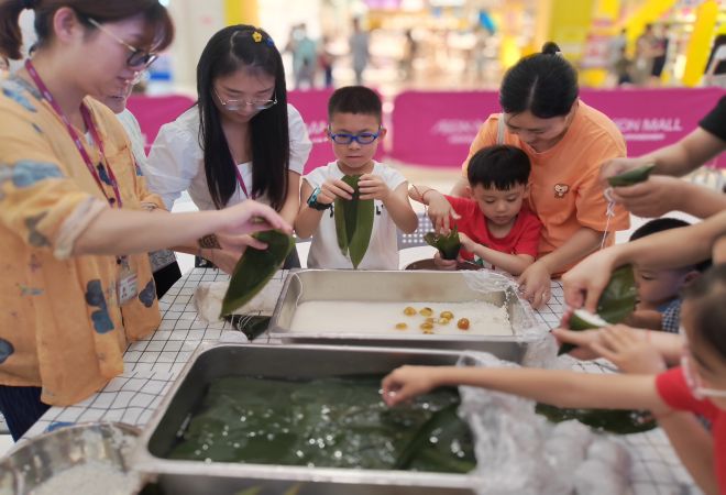 端午又称端阳,是中华民族古老的传统节日之一,在端午节吃粽子、挂香囊、系五色绳等都是端午节古老的习俗。为传承中华优秀传统文化,了解传统习俗,营造欢乐祥和的节日氛围,太湖街道团工委联合永旺梦乐城(吴中),开展了“‘粽’情盛夏 尽享乐趣”端午游园会活动。