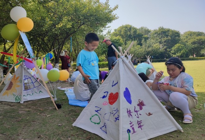 活动最后,志愿者还给青少年团员们发放了彩绘帐篷DIY所需的绘画工具、材料包等,青少年团员们迫不及待的开始在帐篷上画了起来。水彩、素描、漫画……各种形式的“画作”纷纷着笔,大家在此刻也成了小画家,在帐篷上展示出天马行空的想象力,绘制的过程丰富了青少年团员们的想象力和创造力,鼓励他们用自己的方式去表现和创造美。