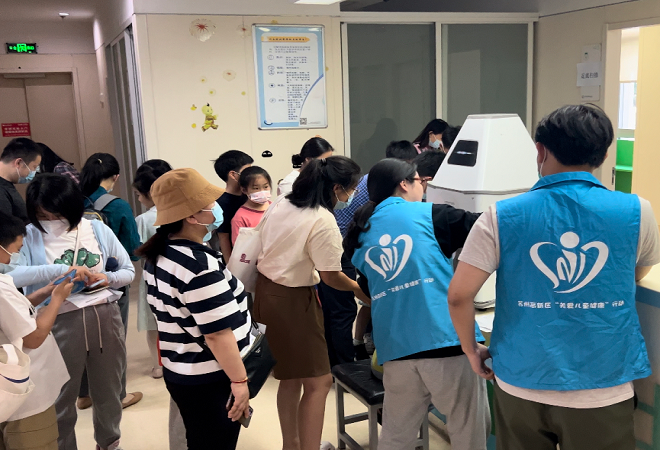 6月4日,苏州高新区团委、区青年志愿者协会在苏州团市委、苏州青少年发展基金会指导下,联动苏州高新区社会事业局、区慈善总会等部门开展“蒲公英计划”——“我与苏州共成长”义卖义诊主题活动走进苏州科技城医院。外来务工人员子女通过骨龄仪义诊了解生长情况,儿科、内分泌科、营养科专家们结合孩子实际情况对儿童生长发育状况进行评估,并提出专业建议。义诊现场同步进行了蒲公英计划义卖集市,原创“小青新医生”文创、书籍、保温杯的等成了义卖“抢手货”。