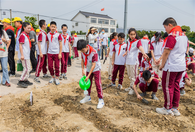 “假如我是一棵小苗,那么天空是我的妈妈,它用雨水滋润我;假如我是一棵小苗,那么大地是我的爸爸,它用泥土营养我。”,“走,我们去种植,种那绿绿的青椒,带上铲子,拿上锄头,一起出发吧!”常熟市常福街道合丰村团支部与常熟市虞山园区小学共建的劳动实践基地“朴合园”里,传来了孩子们清丽质朴的诵读声。