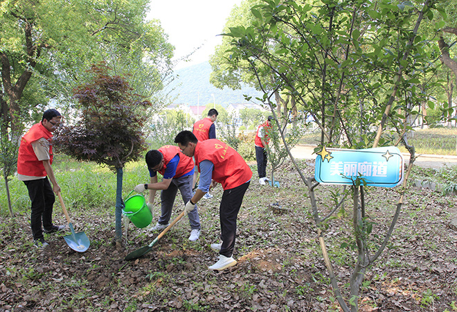 随后,志愿者们前往了虞山船闸南岸。前期因2号闸大修工程施工,南岸绿化遭到一定程度损伤,绿化整治提升工作正在持续进行中。青年志愿者们加入绿化工人队伍,参与到绿化修复工作中,亲手栽下了多株小树苗,通过自己的劳动为船闸增添绿意。