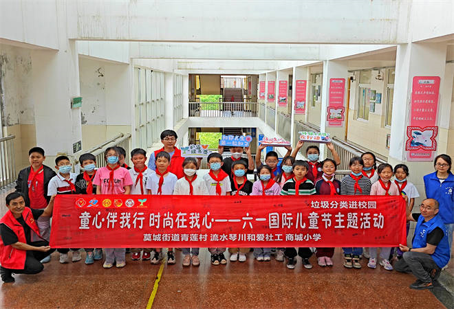 在六一儿童节即将到来之际,为倡导垃圾分类新时尚,实现“教育一个孩子,带动一个家庭,文明整个社会”的教育理念,6月1日,常熟市莫城街道青莲村团支部联合常熟市流水琴川和爱社会工作发展中心走进商城小学共同开展以“童心伴我行 时尚在我心”为主题的垃圾分类进校园活动。