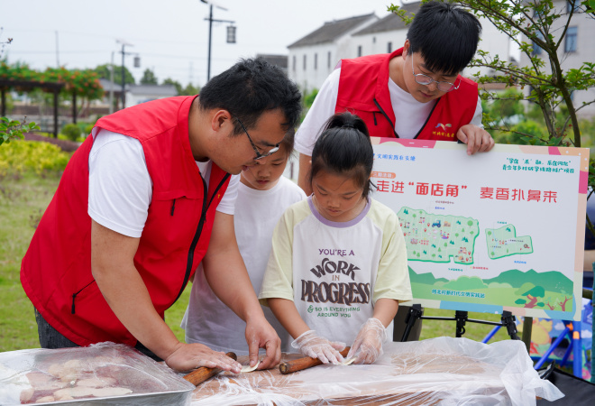 6月3日上午,由何北村团总支、何市中心小学、知恩公益社联合开展的“学在‘禾’融,乐在何北”青少年乡村研学路线推广项目”第三站来到何北村千村美居“网红打卡点”——面店角。
