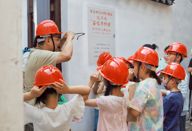 虞山街道团工委积极组织古城青少年参与研学活动,鼓励古城青少年用双脚丈量、用双手触摸古城,领略虞山文化魅力,在这群古城青少年心中种下一颗古城保护发展的小小种子。6月25日,举办了首期“文化西泾岸”微研学活动,青少年们走进脉望馆、传统街巷、笛在月明楼、环秀居后楼、 曾赵园等点位,围绕古典园林艺术、传统街巷文化、虞山文化流派、古城保护更新,实地研学西泾岸的“文化密码”。