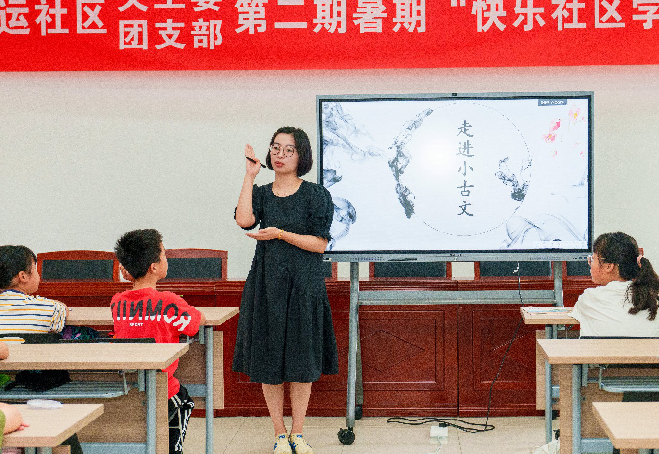 7月3日,鸿运社区暑期夏令营正式开班,共计24名孩子报名参加。在第一节开班课堂上,由叶圣陶实验小学青年语文老师王静殊给小朋友们进行古文知识拓展。家长们看着孩子在课堂上学得有模有样,十分开心的说,“课间观察十分钟,孩子们都迫不及待举手想回答老师的提问,与老师互动很融洽,课间表现很积极,老师声音温柔气质甜美,社区工作人员在炎炎烈日下为孩子们统筹学习安排,孩子们暑假的福音。”