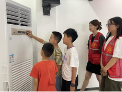 活动最后,暑托班的孩子们在青年志愿者的带领下,在东方社区开展了节能实践活动。“空调调在26度正好。”“卫生间有节约用水的标识,水龙头没有漏水。”“有分类垃圾筒并且垃圾分类投放正确。”大家分成三个小组对东方社区新时代文明实践站内用电、用水和垃圾分类情况进行了“监督”。