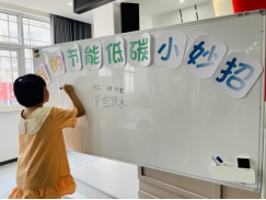 “你家有什么节能低碳小妙招吗?来分享一下吧。”志愿者的提问引起了孩子们的热烈讨论和踊跃分享。光盘行动、骑车走路、节约用纸、淘米水浇花、随手关灯、洗手或洗澡打肥皂的间隙关水龙头、减少使用一次性餐具……孩子们不仅对节能常识进行了分享,还对一些容易忽视的节能小细节进行了补充。