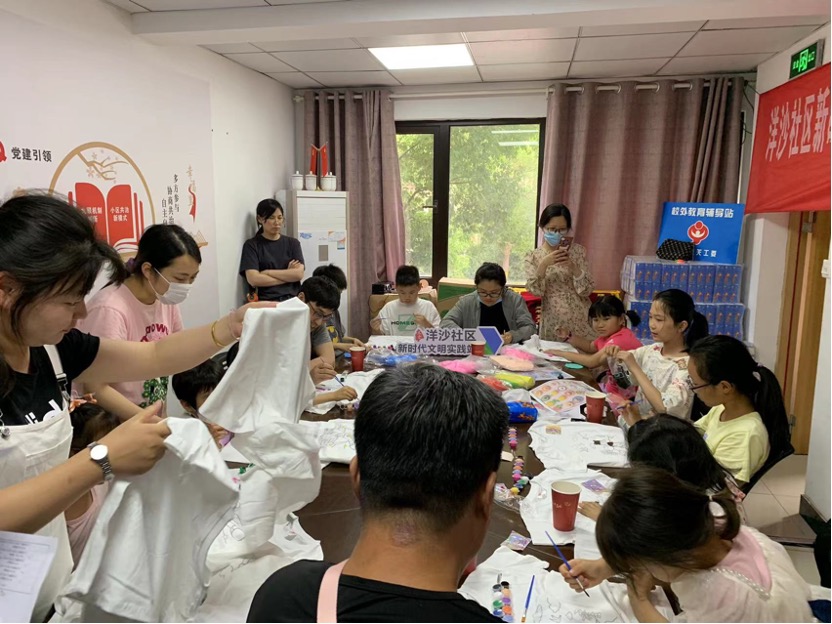 洋沙社区团支部开展“关爱花朵 快乐成长”六一儿童节亲子T恤涂鸦活动