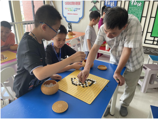 为促进少年儿童成长健康文化气氛,丰富暑期文化生活,弘扬中华优秀传统文化,陶冶青少年情操,开发青少年智力,提高少年儿童品德素养,2023年7月11日,福溪社区新时代文明实践站青少年暑托班开展围棋课程,助力孩子们欢度暑期,度过一个充实又有意义的夏天。