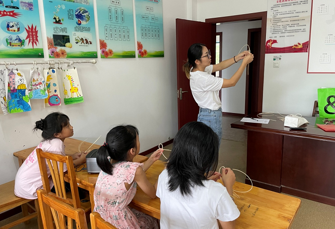 为进一步提升辖区未成年人思想道德建设水平,甪直镇保圣社区团支部联合光影墅,开展“强国复兴、童心逐梦”——Yue少年成长计划特色主题课程之七彩夏日系列活动,7月20日下午,第三节非遗藤编(纳凉藤编兔)在保圣社区开展,辖区18名未成年人参与此次活动。