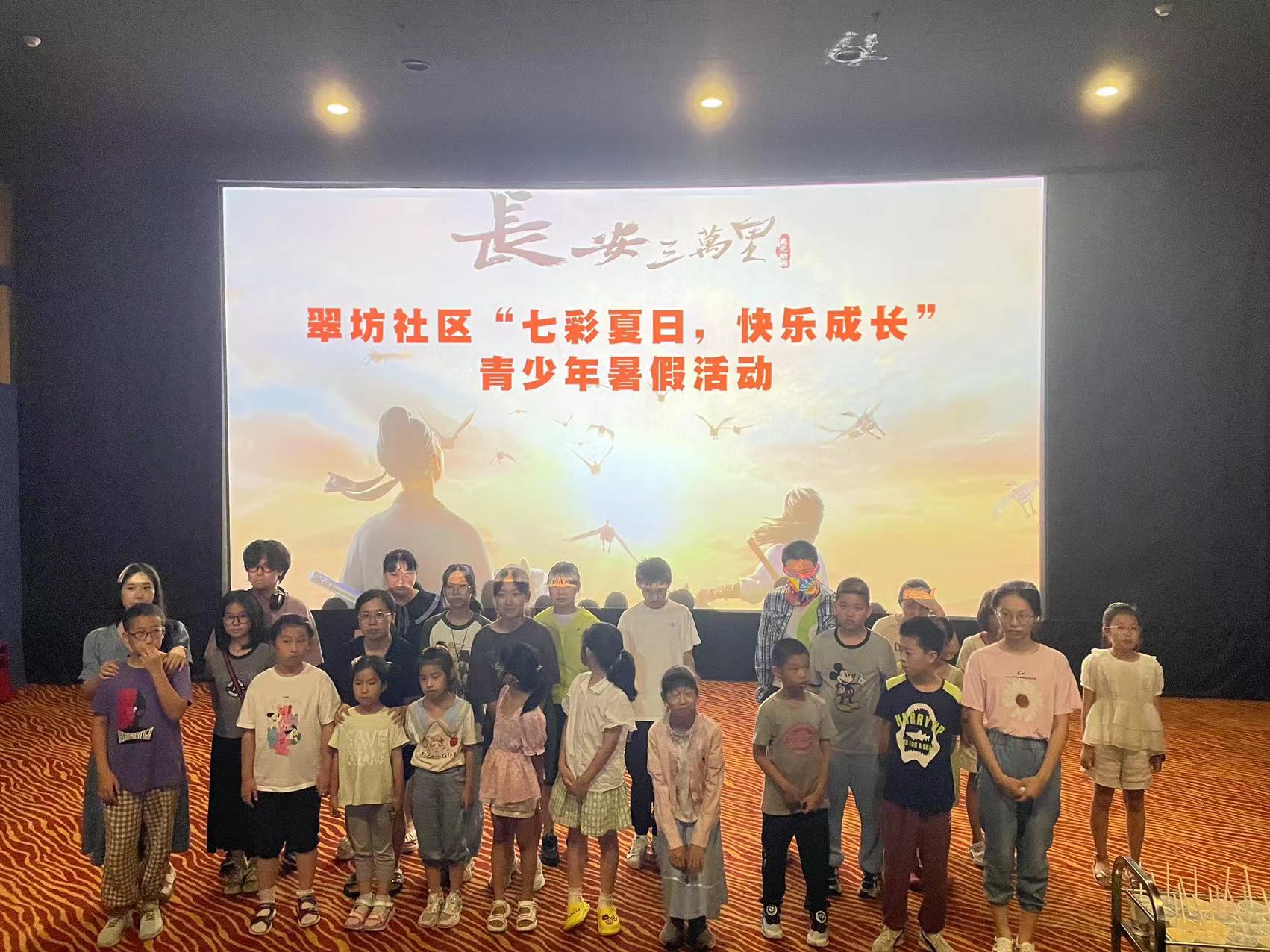 为了丰富社区青少年的暑期生活,让他们拥有一个丰富、健康的假期,7月13日下午,翠坊社区组织辖区内的青少年与家长,在木渎影视城开展“七彩夏日,快乐成长”暑期观影活动。通过观看电影《长安三万里》,让亲子在假期期间加强互动,增进亲子感情。