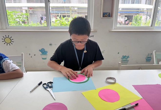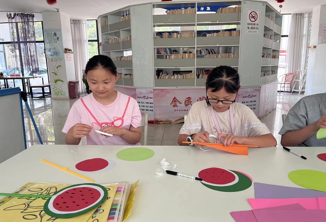 在这炎炎的夏日,老师们组织青少年手工制作西瓜扇子,指导他们用彩纸、记号笔、双面胶逐步进行,在他们灵巧的双手下,一把把可爱的西瓜扇子便诞生了。