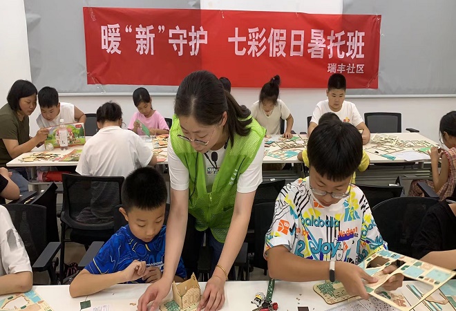 此次活动主要分为两个环节,第一环节是由工作人员向青少年分享居家安全中的防拐骗、上网安全、自然灾害、气象安全等知识,通过案例分享与问答相结合的形式让他们更深入的了解居家需要注意哪些,提高他们对居家安全危险因素的认识。第二环节是“我心目中的家”,此环节通过3D拼图手工活动,让青少年们搭建出心目中的家,工作人员细致地讲解拼图模型的步骤及注意事项,随后大家根据自己的爱好自由挑选喜欢的图案,并在工作人员与志愿者的指导下,一块一块地拼接图片,用智慧的小手拼出了一个个属于自己的“家”,大家都表示要注意居家安全,保护好自己的家。
